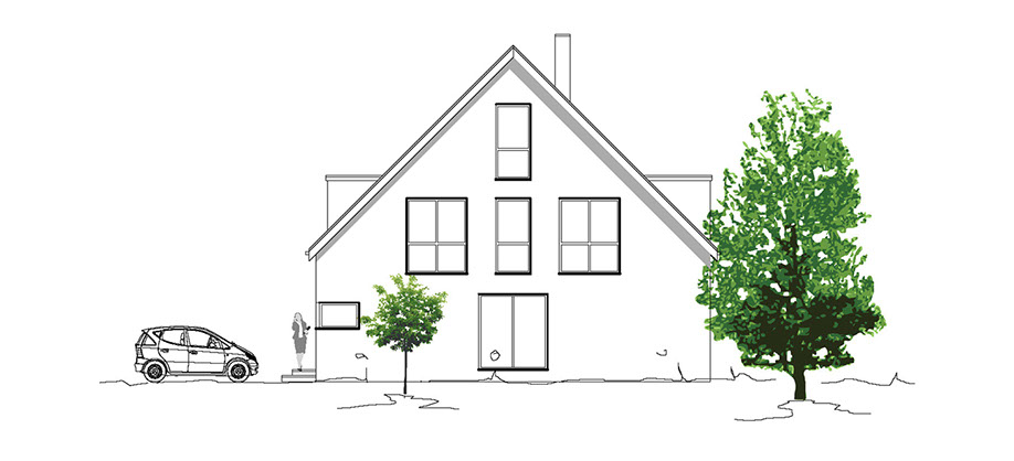 Einfamilienhaus mit Garage und überbautem Studio, modern und ansprechend, flexibel und kinderfreundlich.